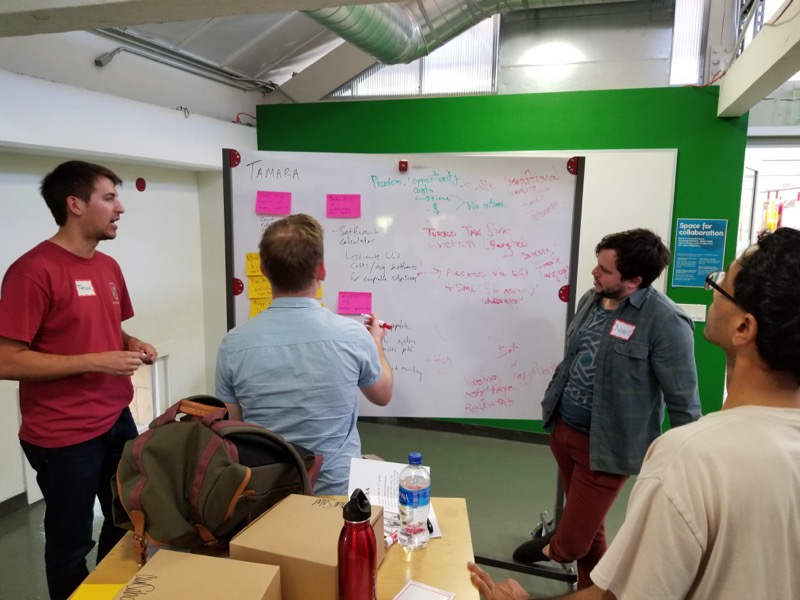 Daniel prepared 4 different use cases and user personas, that grounded each of the design teams in a particular situation. We formed teams of 4-5 people around different use cases, and led the teams through brainstorming, prioritization, and prototyping of new concepts. Among the ideas: a mobile eviction help van with lawyers, a conversational app that would help direct people to the right, streamlined content to focus on, and a Khan-Academy-like training for people who want to defend themselves from eviction.