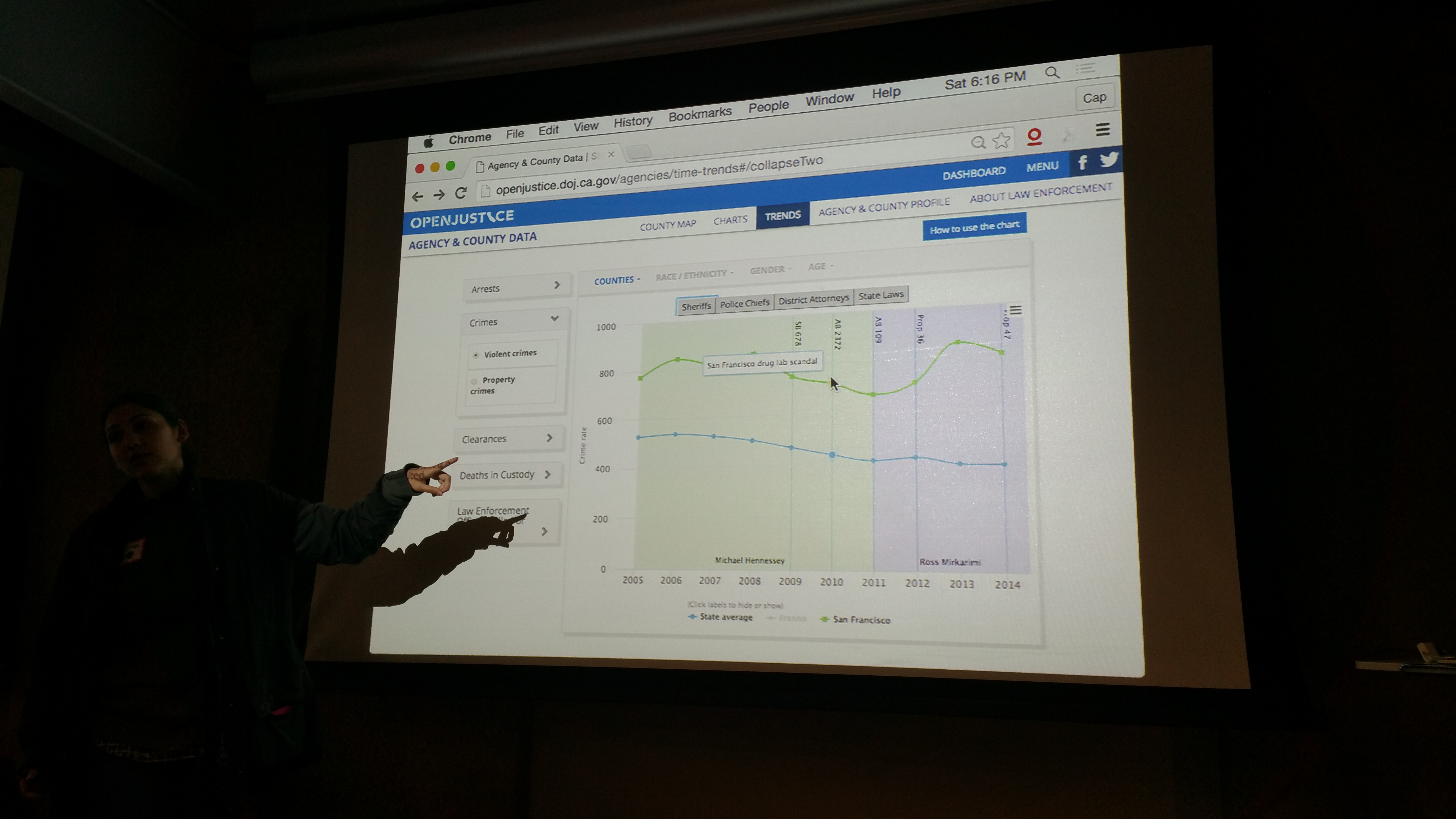 2. Making Criminal Justice Data come alive: How can we make all the data that the DOJ gathers about the justice system in California be more useful and engaging? Are there other displays, data sets, interactive features, or beyond that could make this data more meaningful? The target users here are researchers, journalists, policy-makers, and engaged citizens who want to understand the realities of how the justice system is operating, and to figure out better ways to intervene and improve it. (As well as, even, what better questions we can be asking about the system — where to be looking to find sparks for new solutions).