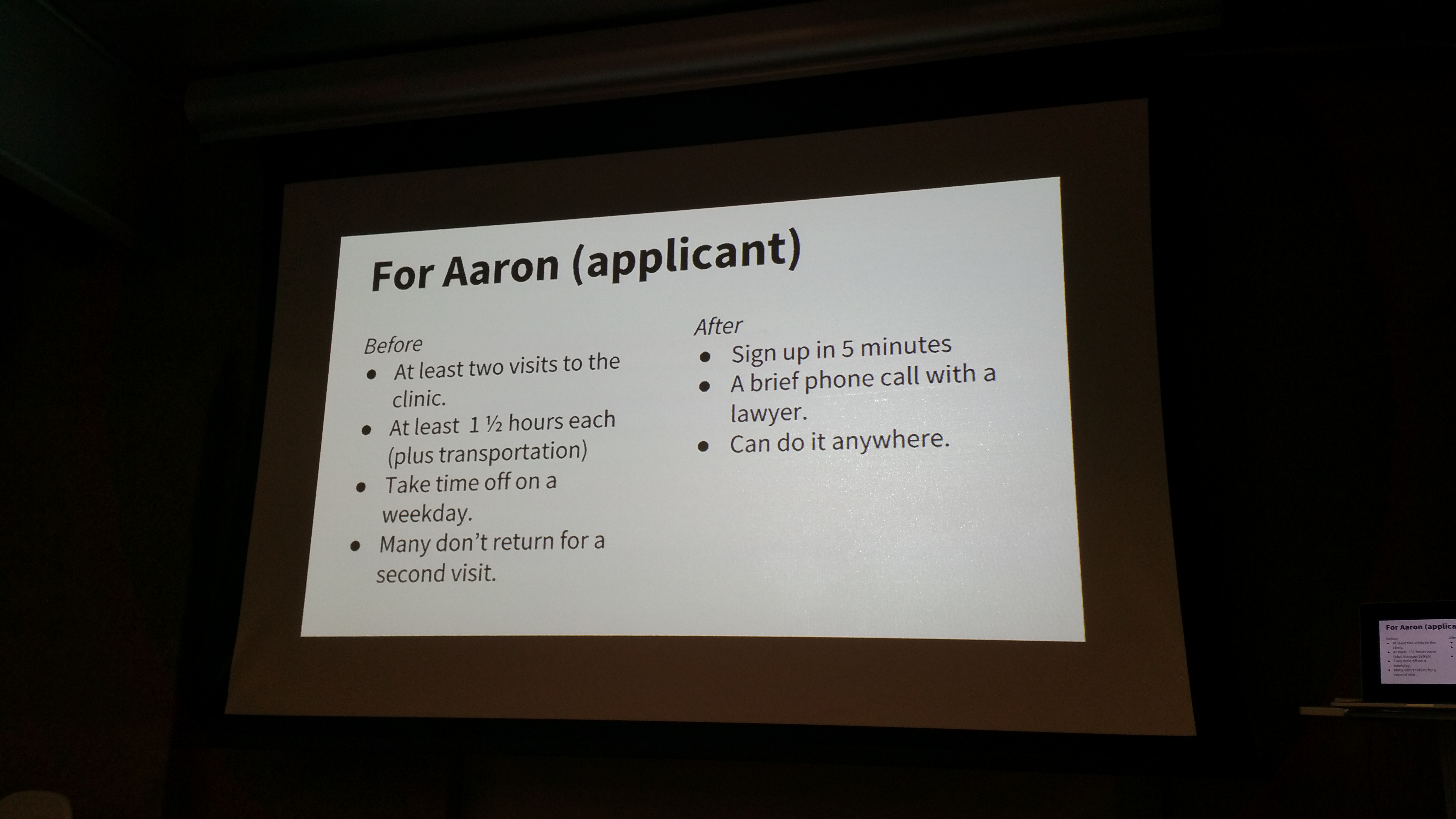 This idea links into Sacha Steinberger’s wonderful Project Legal Link, which similarly aims towards coordinating social and legal service providers. Hopefully they might be able to converge — there is clearly a strong need, and tech could provide much of this coordination.