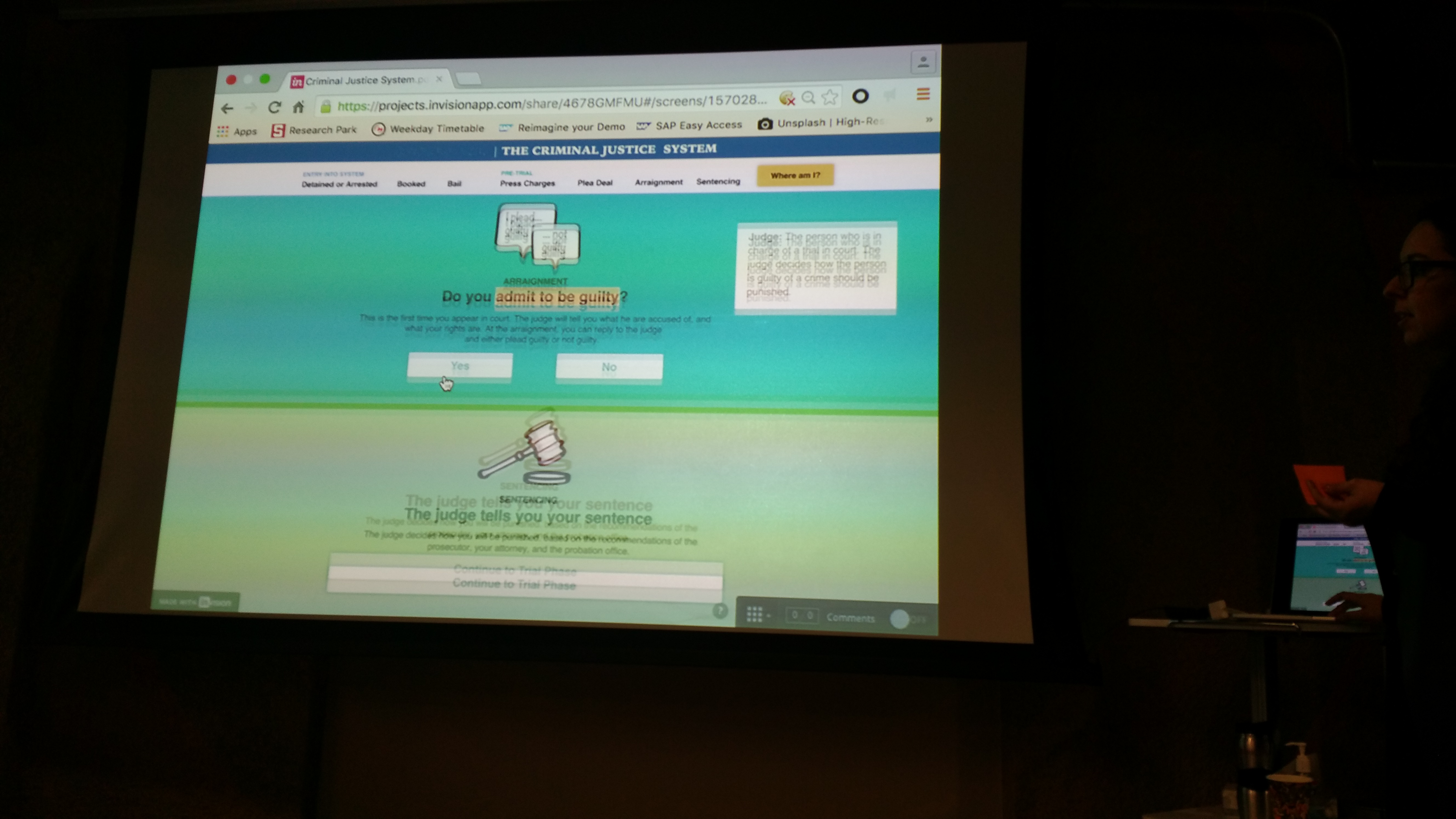 Visual Guide to the Justice System was made in direct response to Challenge #1 — and it’s a web-based visual guide to the stages that a person goes through if they are arrested and charged with a crime.